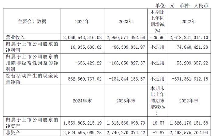 4月28日,广州鹿山新材料股份有限公司发布2024年年度报告。报告期内,公司实现营业收入20.67 亿元,同降29.96%;归母净利润为1,693.56 万元,同比增加1.03亿元,经营性现金流净额达到56,256.97 万元,同比增加71,741.39 万元,盈利能力及经营性现金流同比得到显著提升。