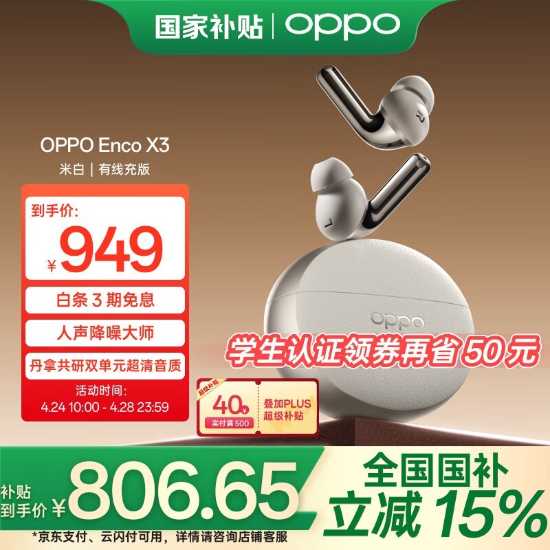 OPPO Enco X3米白有线充版耳机京东促销