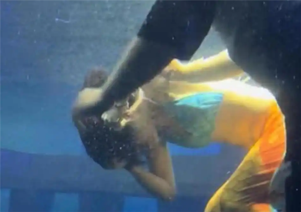 该“美人鱼”表演人员冯女士称,事发前她在正常表演,上浮换气时被水池上方的水流冲掉了护目镜,水也冲进了口腔,而且脚蹼脱落,无法上浮,进而导致溺水,自己并非因为低血糖溺水,自己此前也一直没有出现过低血糖。20秒后,工作人员跳入水中救起昏迷的表演者。