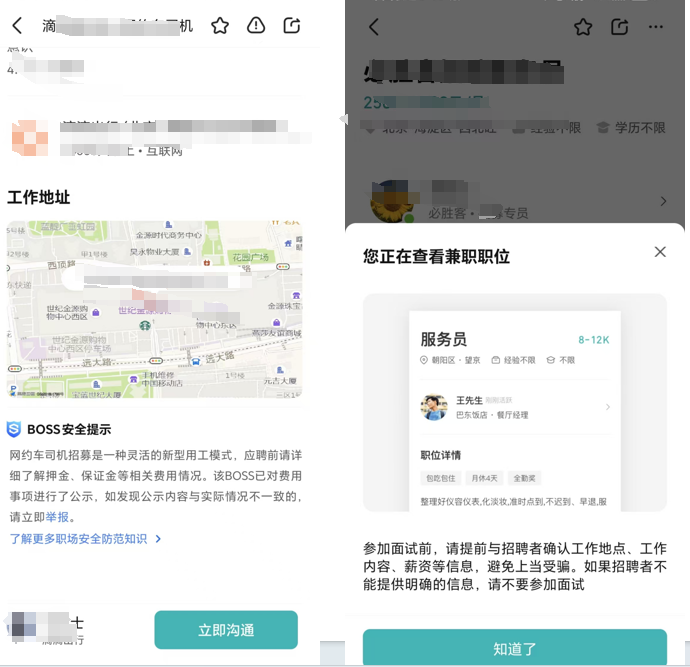 而据了解,这样的兼职安全保障专项,BOSS直聘在“五一”、国庆、暑期等兼职类岗位招聘、求职需求双涨的节点都会启动。以不断迭代的风控能力,全力保障求职者安全。