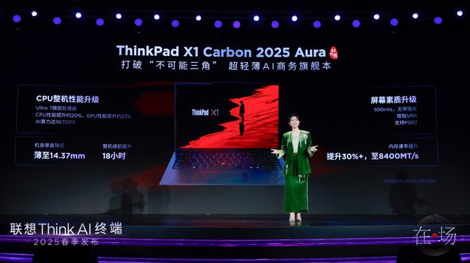 4月28日,主题为“在场”的联想Think AI终端2025春季发布会在联想北京全球总部举办。会上,联想发布了多款内嵌天禧个人超级智能体的AI终端新品,包括ThinkPad X1 Carbon 2025 Aura AI元启版、ThinkPad T14p 2025 AI元启版、ThinkPad P14s/P16s 2025 AI元启版、ThinkPad E14/E16 2025超能版、ThinkBook 16p 2025 AI元启版、ThinkCentre neo Ultra 2025 AI元启版等AI PC。以及联想thinkplus智会会议方案和AI PC伴侣thinkplus锋行者大功率移动电源140W也亮相现场。联想Think AI终端旨在为不同商用场景的用户提供无缝联接的AI办公体验,帮助每一个人在不确定中坚定“在场”。