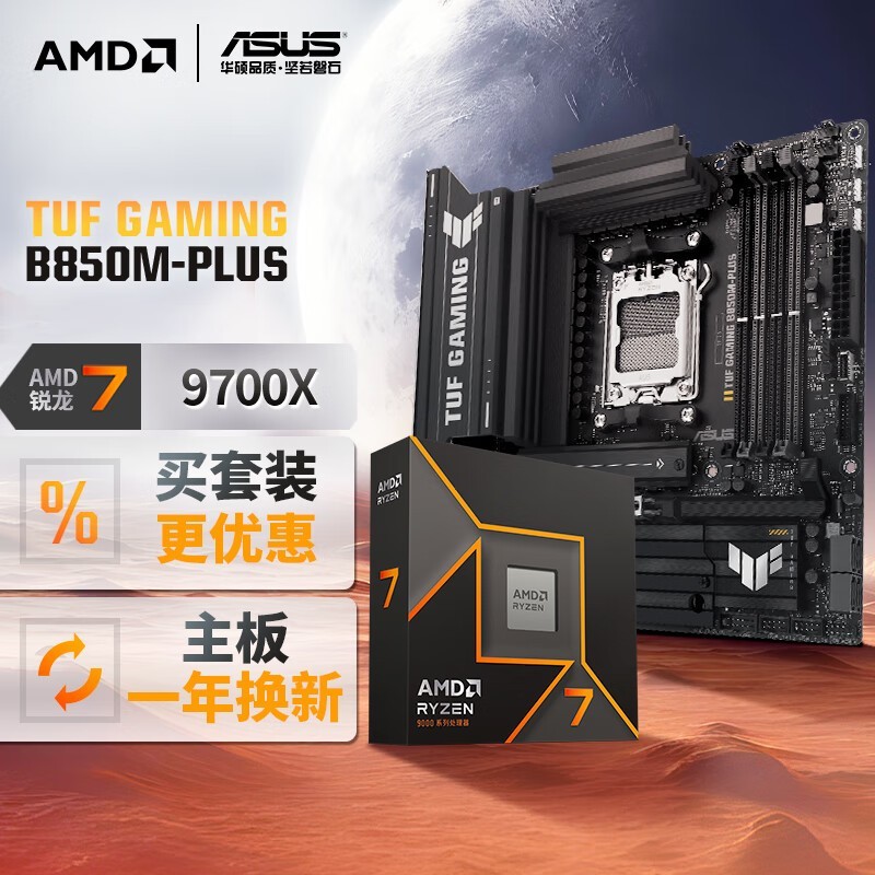 华硕TUF GAMING B850M-PLUS主板+锐龙7 9700X套装促销