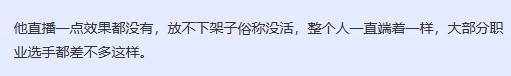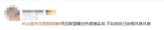 还有一批用户已经对目前互联网上各种人频繁的“退网/复出”感到厌倦了,对于这次的Uzi宣布停播,他们表示“无人在意”,而且现在他现在本身热度也不高,“直播是真的没啥意思”、“放不下架子俗称没活,整个人一直端着一样,大部分职业选手都差不多这样。”