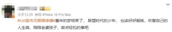 好多网友都对他的这一决定表示支持,认为目前英雄联盟也好、游戏直播也好的确热度不高,不如休息休息陪陪家人,做点自己想做的事,只是这一次的停播不知何时再见,也有些人发出感叹“青春结束了”