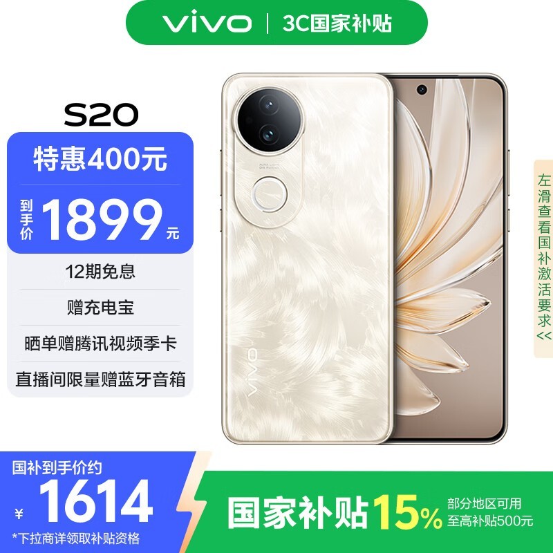 vivo S20 5G手机8GB+256GB凤羽金超值价