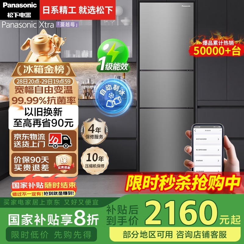 松下NR - XC30A2A - S冰箱京东活动价低至2008元