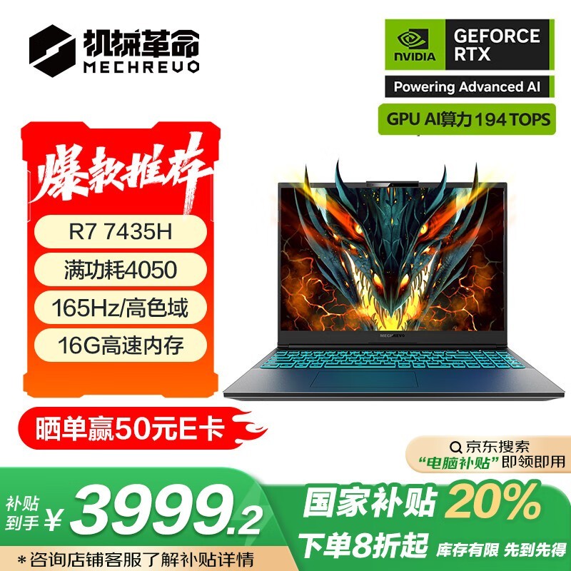 机械革命蛟龙16K笔记本京东优惠价4899元