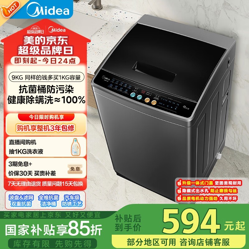 美的MB90V30E波轮洗衣机 宿舍租房用超值
