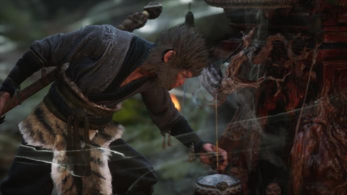 在战斗方面,游戏中包含了奇术、身法、毫毛、变化四类法术,如聚形散气可以让玩家留下假身并迅速遁走,定身法可以将对手定在原地,使用毫毛变身成不同的生物,铜头铁臂则可以让玩家化作一块金石,震开对手的攻击等。这些变身能够提供特殊的能力和战斗策略。需要注意的是,游戏加入了法力值的设定,玩家在战斗中施展法术、技能等会消耗法力值,玩家需合理管理法力值的使用,避免因法力值耗尽而陷入被动。