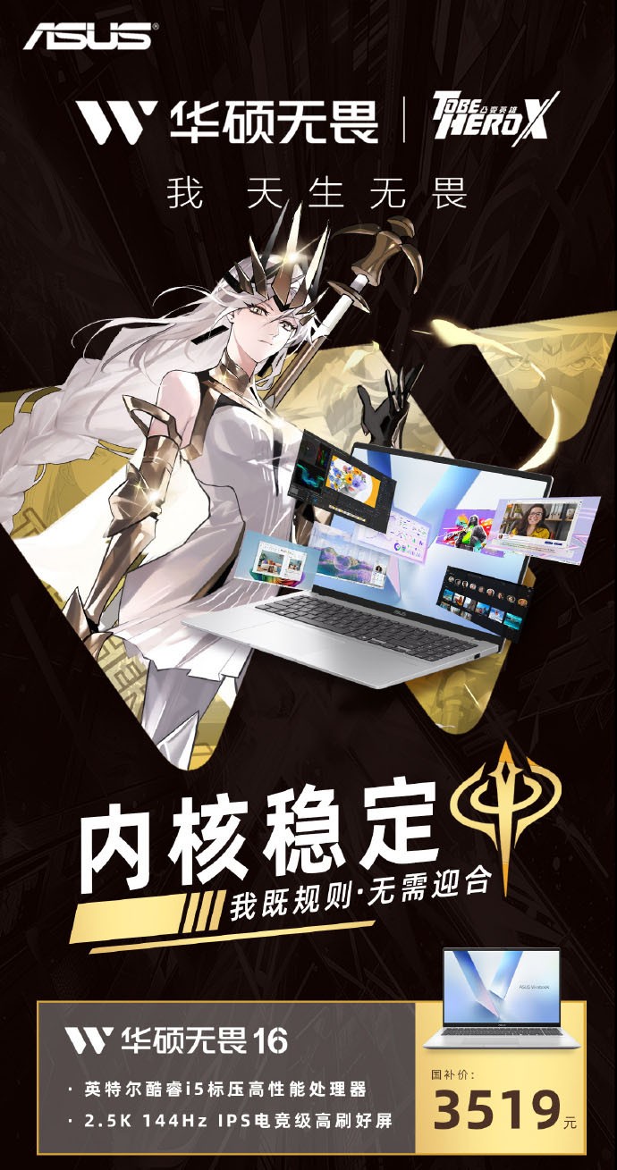 热血国漫《凸变英雄X》“奈斯篇”正式完结!主角林凌终于迎来了自己的高光时刻,为拯救“潇月卿”,放弃成为英雄奈斯,以普通人的身份,对战反派“天眼”,最终获得信赖值,成为英雄榜上的新英雄。而这无畏危险,直面挑战的态度与笔记本圈内备受好评的华硕无畏家族高度契合。随着五一小长假临近,华硕无畏16 酷睿版也迎来好价,凭借高性能、高素质好屏等高能实力,成为欢度五一最值得推荐的高能轻薄本。当下国补价仅3519.2元,非常适合当代年轻用户、打工一族入手。