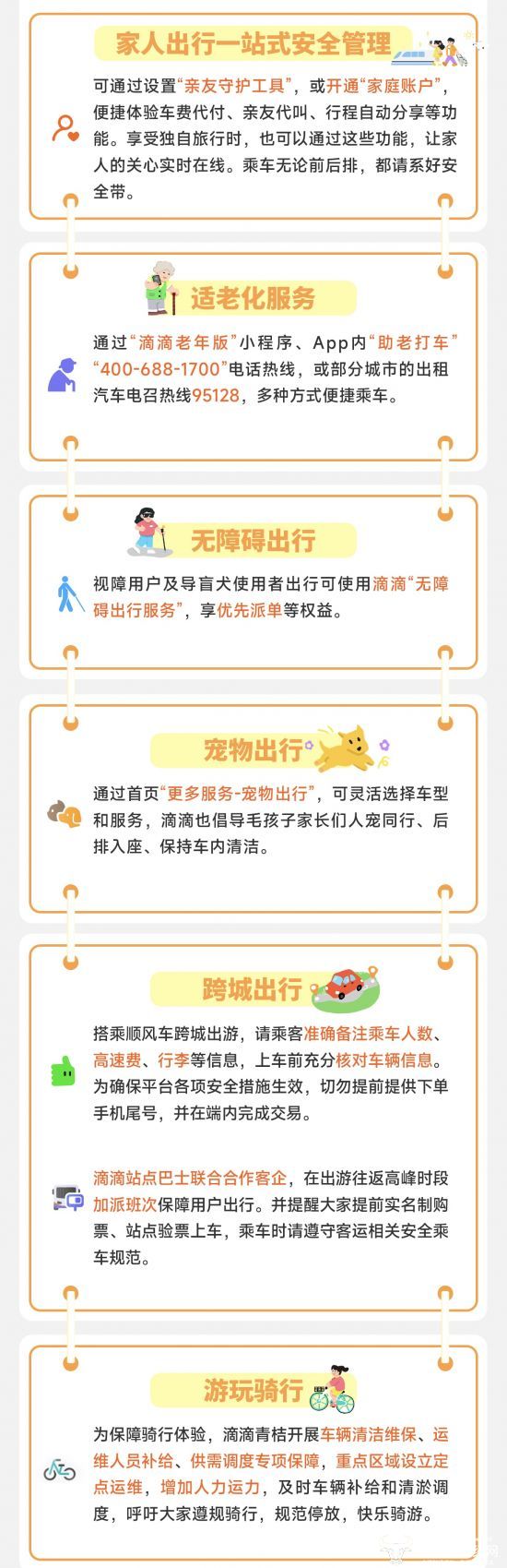 假期出行需求多样,全家出游、扶老携幼,或带上毛孩子。不同的场景,滴滴都有对应的产品或功能,也会匹配相应的安全守护措施。
