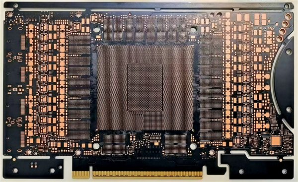 可以看到,PCB正反面各安放了16个显存焊接位,共计32个,因此单颗容量必然是3GB,这才能组成96GB。