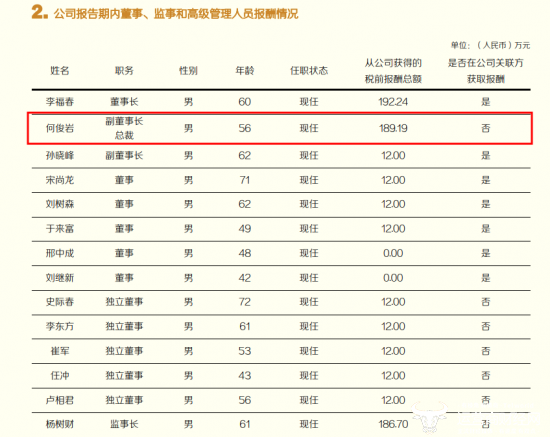 显然,何俊岩精通业务,所以,2015年10月,何俊岩就正式升任公司总裁,到今年10月就10年。近五年来,何俊岩的薪酬较稳定,总体来看变化不大。据东方财富网统计数据显示,2020年至2024年期间,何俊岩的薪酬分别为191.0万元、190.5万元、189.8万元、189.5万元、189.2万元。