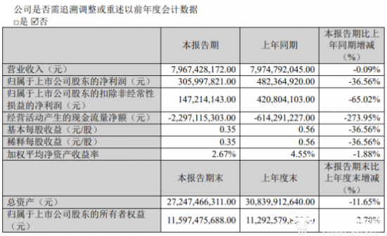 报告显示,2025年第一季度,江铃汽车的营业收入为79.67亿元,同比下降0.09%,与上一年同期基本持平;归母净利润为3.06亿元,较上一年同期减少了1.76亿元,同比下降36.56%,降幅比较大;扣非归母净利润为1.47亿元,同比下降65.02%。经营活动产生的现金流量净额为-22.97亿元,同比暴跌273.95%。