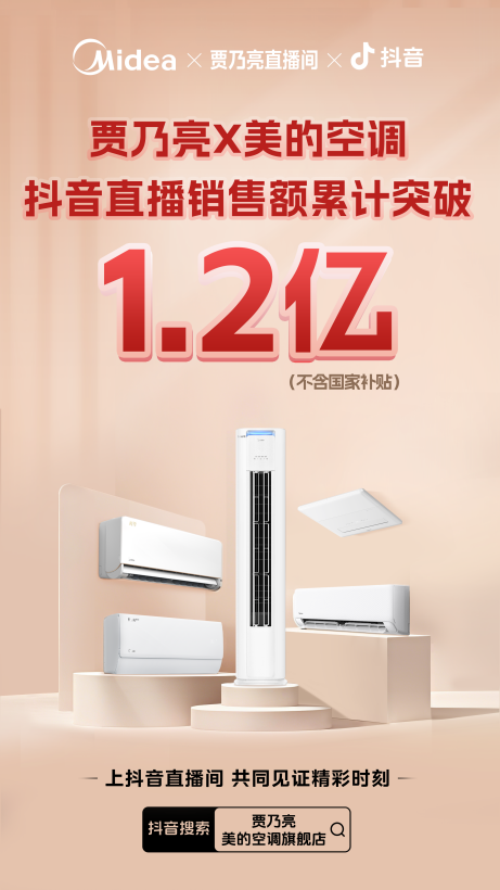 4月26日-27日,美的空调与头部明星主播贾乃亮的抖音直播以破亿元销售额的成绩圆满收官!在空调行业存量更新成为市场消费主流的当下,这一成绩印证了美的空调在品牌影响力、产品品质、售后服务等方面的强竞争力。