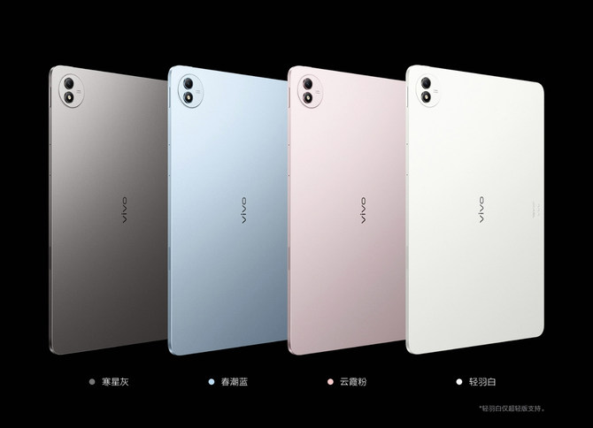 vivo Pad5 Pro 在工业设计上延续了品牌一贯的精致感,同时以 “轻量化” 为核心进行突破。机身采用一体化金属材质,表面经过细腻的磨砂工艺处理,不仅带来温润的握持手感,更有效减少指纹残留。标准版提供云霞粉、春潮蓝、寒星灰三款配色,灵感源自自然景观 —— 云霞粉如晨曦初绽的温柔,春潮蓝似碧波荡漾的灵动,寒星灰则展现宇宙深邃的质感,满足不同用户的审美偏好。而超轻版独有的轻羽白配色,以纯净白色搭配灵动线条,宛如羽毛般轻盈雅致,成为追求极简风格用户的心头好。