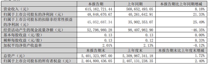2025年一季度,宇瞳光学实现营业收入6.15亿元,同比增长8.18%;归母净利润为4884.87万元,同比增长21.33%;扣非净利润为4505.27万元,同比增长25.49%。