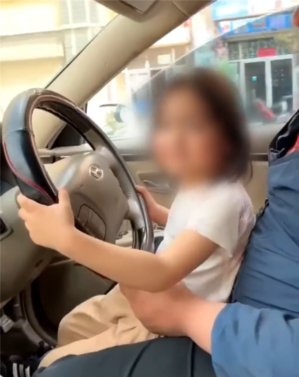 视频中,驾驶员努某未系安全带,将年幼的女儿抱坐在腿上操控方向盘,车辆行驶过程中两人嬉笑拍摄,甚至还在小女孩的操作下拐了两个大弯,周围车流量很大,行为极其危险。