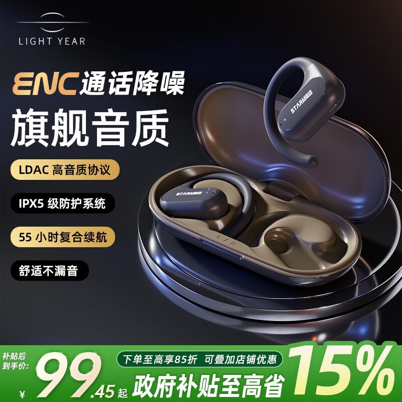 籁特易耳光年星珀开放式挂耳蓝牙耳机夏夜黑限时特惠