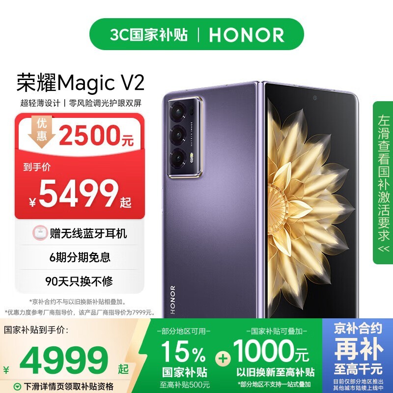 荣耀Magic V2折叠屏手机限时特惠仅4971元