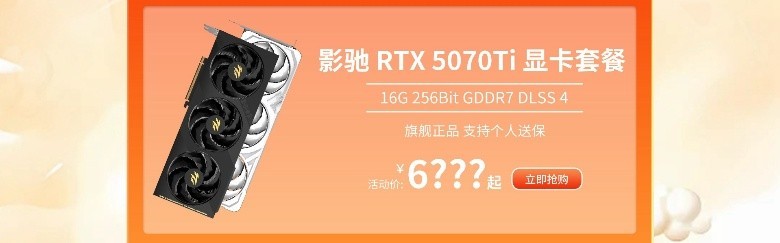 影驰RTX 5070 Ti 系列显卡,配备16GBGDDR7显存,显存频率高达28Gbps,拥有出色的数据传输速率,可畅玩4K分辨率的3A游戏大作;得益于第五代Tensorcores核心,还可稳定运行本地部署的AI大语言模型,现狂欢价仅需6999元起。
