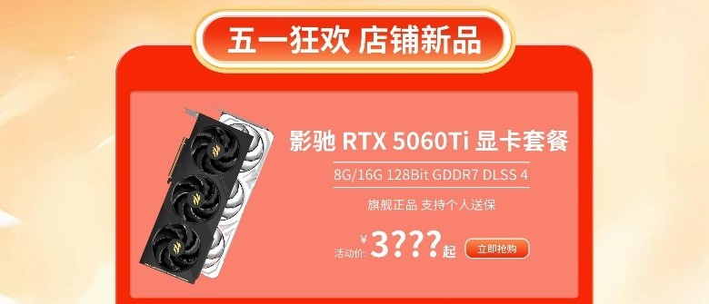 影驰RTX 5060 Ti系列显卡,搭载全新Blackwell架构,配备8G/16G双显存版本,满足不同玩家需求。在DLSS4多帧生成技术加持下,3A游戏大作帧率倍增,兼顾1080P与2K高清画质的同时,还能为你带来丝滑体验,现狂欢价仅需3599元起。