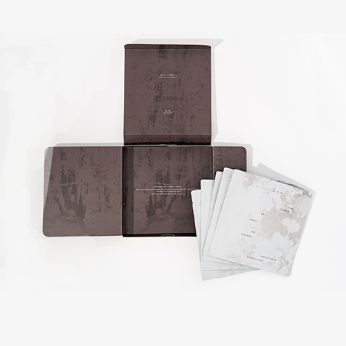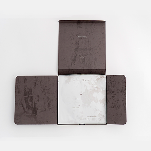 外盒采用极简雾面白卡纸,指尖滑过如抚摩天鹅绒;内盒展开刹那,Carolina Lino摄影下的森林光影倾泻而出,晨雾在折痕间流动,溪水随盒体开合泛起涟漪。品牌更埋藏叙事彩蛋:当第五片面膜被取用后,盒底浮现艺术家手写诗句——“诗歌穿过森林,通过光亲吻胶片,书写影像”,将空盒化为可收藏的艺术装置。