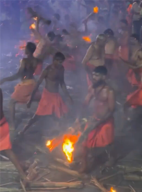 在这场活动中,数百名信徒赤裸上身,分成两队,相距15-30米,互相投掷燃烧的棕榈叶火把,持续约15分钟。