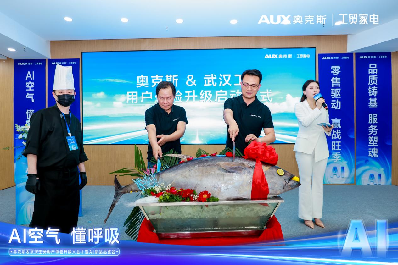 奥克斯空调副总裁龙才华以及武汉泰欣电器总经理刘启荣携手启动此次升级行动,这一仪式寓意奥克斯与武汉工贸联合升级,新品将在市场大卖,鳍开得胜,开启市场新辉煌。奥克斯推动合作伙伴实现资源共享与优势互补,以达到价值最大化。
