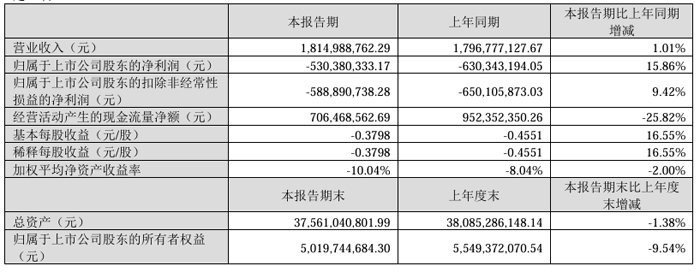 报告期内,营业总成本24.16亿元,销售费用、管理费用、研发费用、财务费用分别为2477.82万元、1.36亿元、2.43亿元、1.95亿元。利润总额亏损6.3亿元,净利润6.29亿元。