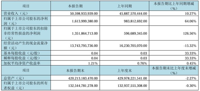 2025年一季度,京东方科技集团股份有限公司实现营业收入505.99亿元,同比增长10.27%,实现归母净利润16.14亿元,同比增长64.06% ;扣非净利润13.51亿元,同比增长126.56% ;实现经营现金流137.43亿元。基本每股收益0.04 元/股。