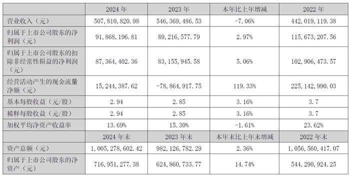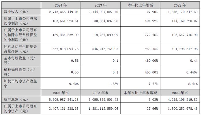 赛腾股份2024年:营收40.53亿元,净利5.54亿