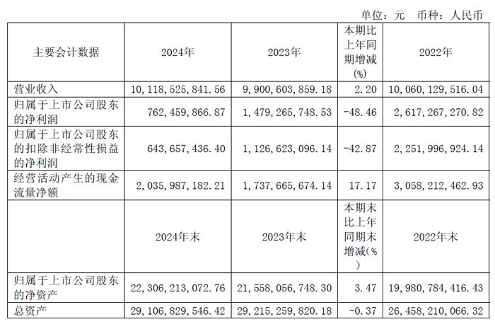 2024年度,华润微电子有限公司实现营业收入101.19 亿元,同增2.20%;实现归母净利润7.62 亿元,同降48.46%;报告期末公司总资产为291.07 亿元;归属于母公司所有者权益为223.06 亿元。