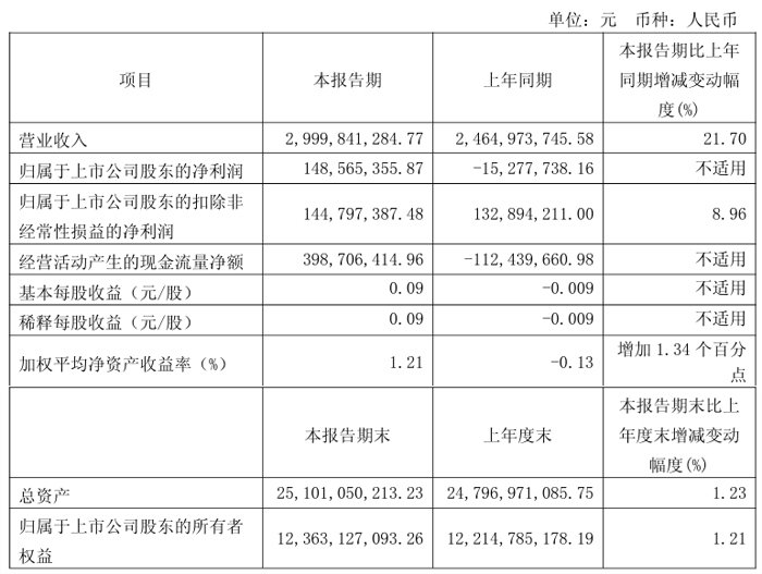 2025年一季度,康佳集团股份有限公司实现营业收入25.44亿元,同比增长3.32% ,实现归母净利润 9481.07万元,同比增长118.59%;实现经营现金流-4.22亿元。基本每股收益 0.0394 元/股。