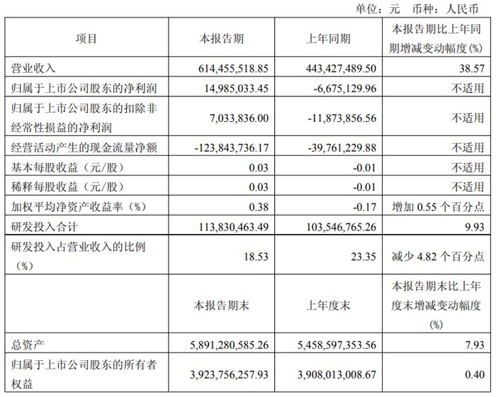 2025年一季度,宇瞳光学实现营业收入6.15亿元,同比增长8.18%;归母净利润为4884.87万元,同比增长21.33%;扣非净利润为4505.27万元,同比增长25.49%。