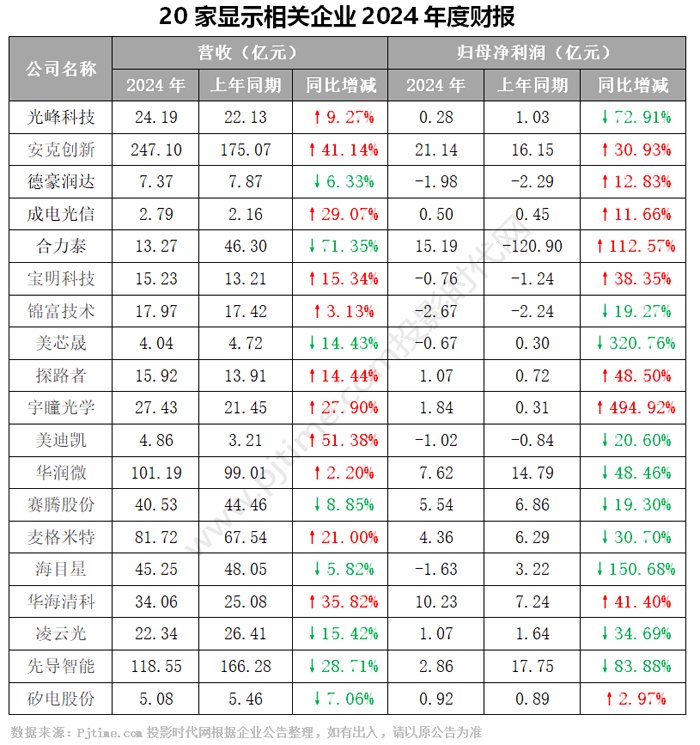 近日,极米科技、光峰科技、京东方、深康佳、士兰微、维信诺、中微公司、北方华创、安克创新、德豪润达、成电光信、宝明科技、锦富技术、美芯晟等25家投影、面板、彩电、光学显示、LED、触控显示、显示模组、车载显示、显示制造装备等25家显示相关企业披露2024年年度报告和2025年一季度报告。