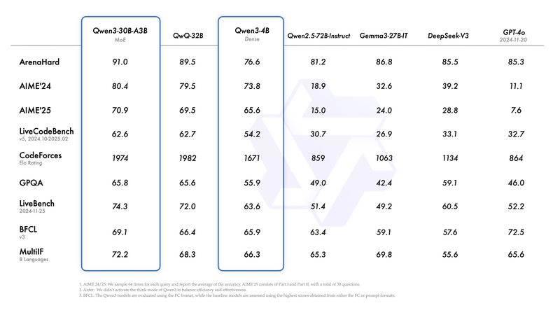 有意思的是,除了拥有235B参数的MoE模型外,Qwen 3还配备了一个小型MoE模型,即Qwen3-30B-A3B。该模型的激活参数量为3B,不及QwQ-32B模型的10%,然而其性能却更为出色。