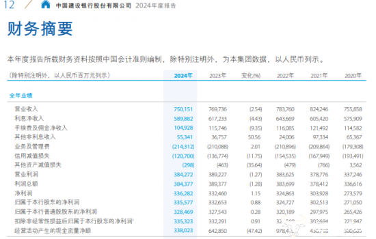 值得一提的是,除上述人事调整外,建行近期公布的2024年年度报告同样值得关注。据其年报显示,在2024年建行实现营业收入7501.51亿元,同比下降2.54%;这一年建行取得的净利润约为3362.82亿元,同比增长1.15%。此外,该行2024年经营活动产生的现金流量净额为3380.23亿元,同比降幅高达47.42%。
