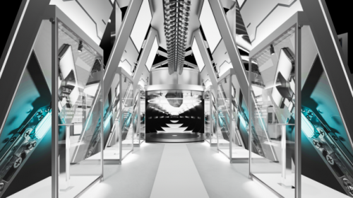 主展区通过机械臂与充电线缆的动态交互,构建张力美学与实用性能的双重注解;利用深渊镜模拟悬浮声波矩阵以物理震动呼应耳机振膜的微观运动,将降噪技术转化为空间共振体验。