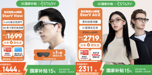 魅族StarV Air2智能眼镜也是一款不错的选择,这款眼镜支持AI快捷记录功能,可帮助消费者提升工作效率,同时可实现提词、翻译、导航等多种功能,京东国家补贴后到手价2311起,同样可享6期免息、晒单返100元E卡的福利。