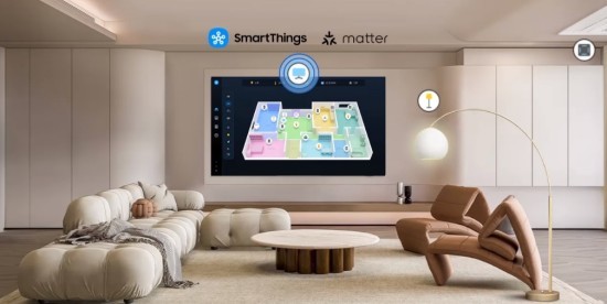 与此同时,S90F正悄然进化成智慧家庭的中枢神经。其搭载三星智能家居平台SmartThings,让生活娱乐化繁为简。电视内置SmartThings网关,可以使用三星电视连接并操控多种智能设备,且支持兼容Matter的设备。设备通知会直接在电视屏幕上弹出,用户能在屏幕上查看整个智能家居系统的3D全景地图。智能信息板能够全天候在电视上展示天气、备忘录、音乐等自定义小组件,用户靠近即可自动激活,并支持语音唤醒。