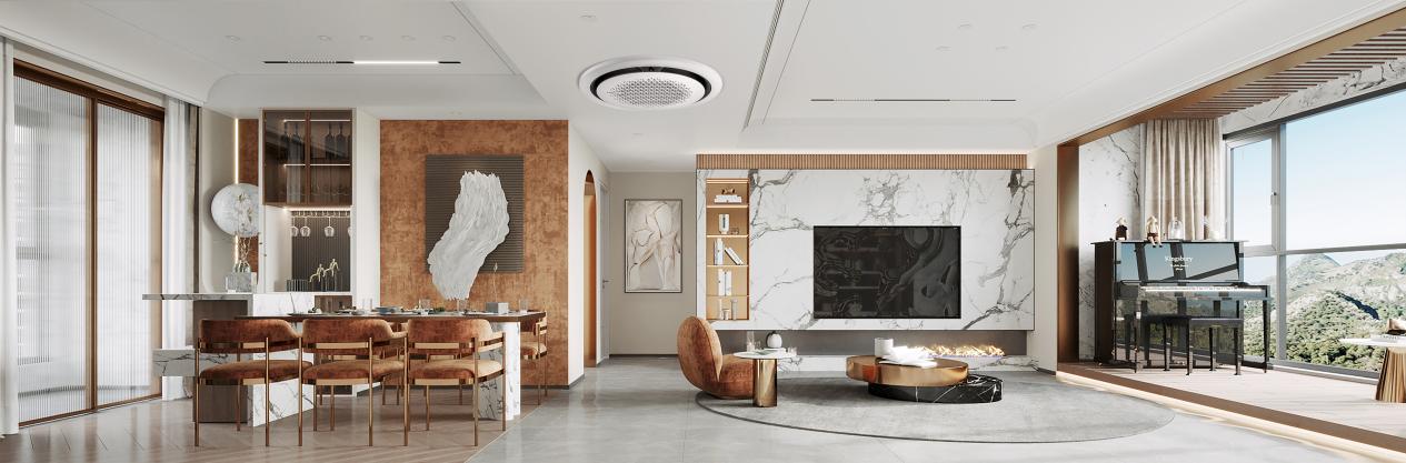 接下来我就带大家一起看看,三星侧出风变频多联机如何针对不同户型与空间特点,打造理想的室内气候环境,带来舒适体验。无论是大空间对气流覆盖的高要求,还是小空间对安装灵活性的考量,三星侧出风变频多联机都能兼顾,真正实现风度、温度、美学的和谐统一。