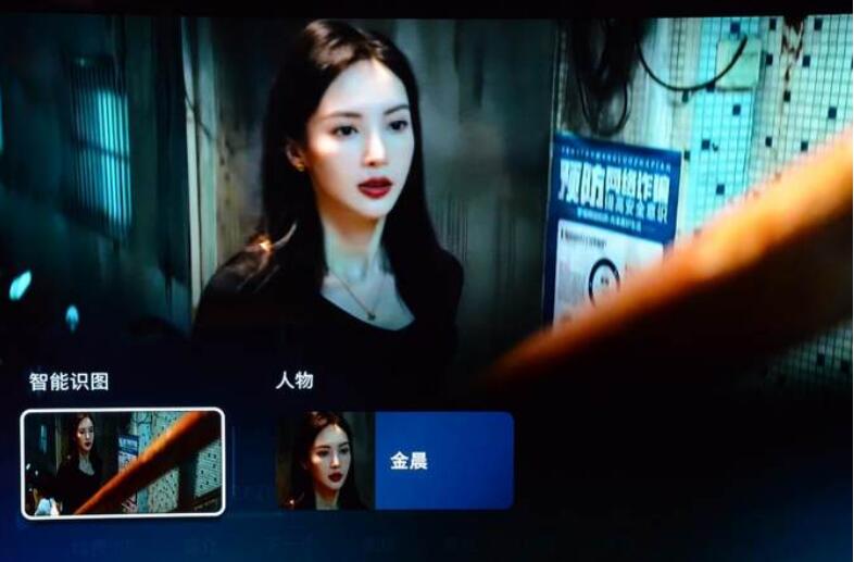 比如当我们正在观看节目时,突然想了解某个演员,我们就可以直接通过遥控器把“小贝AI视界”呼叫出来,此时屏幕上就会显示出该演员的个人信息,包括基于该名演员的相关作品都会展示出来。