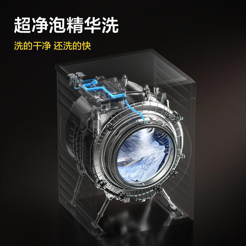 AI超级筒T7R Pro搭载超净泡精华洗功能,利用微气泡发生装置,生成亿万微米级气泡,深入衣物纤维震动剥离污渍,实现深度洁净。同时,净雨喷淋模式结合变频循环水泵,使衣物快速浸湿不伤衣,并通过文丘里结构和速溶预混仓,实现5倍精华液释放,高效去渍,提升洗净力。