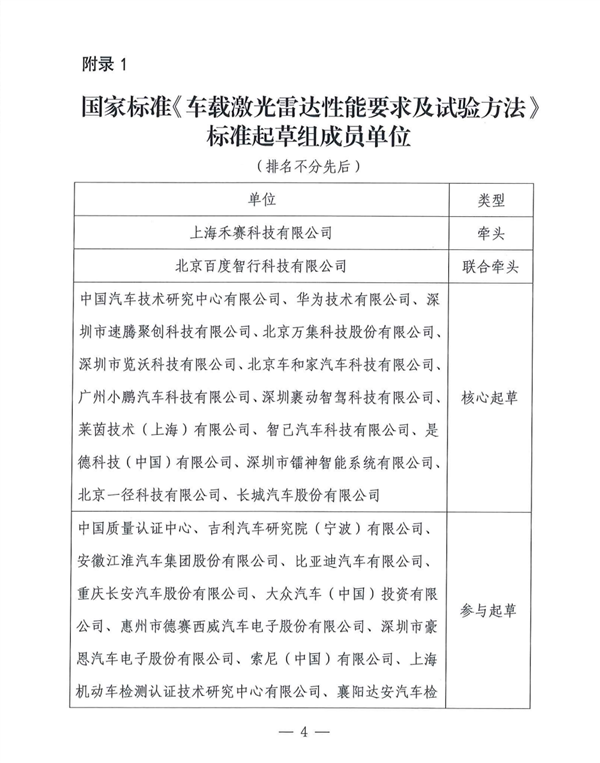 在三年多的制定过程中,禾赛携手了五十余家国内主要激光雷达制造商及核心整车企业的顶级专业力量,规定了车载激光雷达的性能、可靠性要求及试验测试方法,具有行业权威性与代表性。