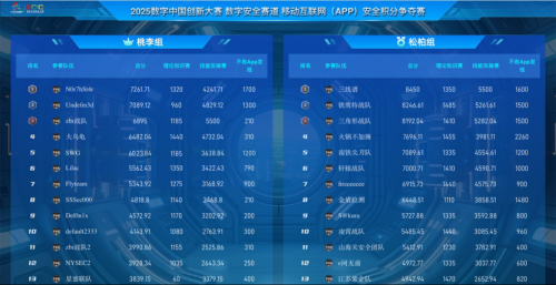 经过7.5小时的激烈角逐,来自北方工业大学的NOr7hSt4r战队、来自南方电网科学研究院有限责任公司的三线谱战队一骑绝尘,分别摘得桃李组、松柏组桂冠。“2025数字中国创新大赛”数字安全赛道—数据安全产业子赛道颁奖典礼于4月20日在福建师范大学顺利举行,组委会为获得移动互联网(APP)安全积分争夺赛及数据安全产业积分争夺赛的金奖、银奖、铜奖队伍隆重颁奖。