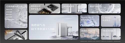 凯度定位的差异化,还体现在对用户使用场景的深度挖掘上。以净饮机为例,传统产品仅满足饮水需求,而凯度考虑到了用户净饮和净洗两方面的需求,推出霸气洗厨下净水器C1200,通过技术创新将净水机的使用场景延伸至果蔬清洗、玩具清洗、洗手洗脸等。“因为微纳米气泡在破灭的时候会产生较大压力,气泡上升的过程中也会形成摩擦力,因此对彻底去除果蔬农残等效果显著。”傅平解释道。