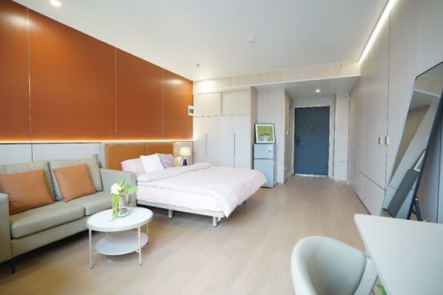 公寓特色:全屋精装交付,以温馨、简约、明亮的风格打造,搭配一线品牌家电及智能系统,实现“拎包入住”的便捷体验;卫浴配置镜柜及淋浴照明系统,细节提升生活品质;全屋标配品牌家具(床、衣柜、书桌等)及家电(空调、洗衣机、冰箱等),配备人脸识别门锁及智慧管理平台,兼顾安全性与科技感。
