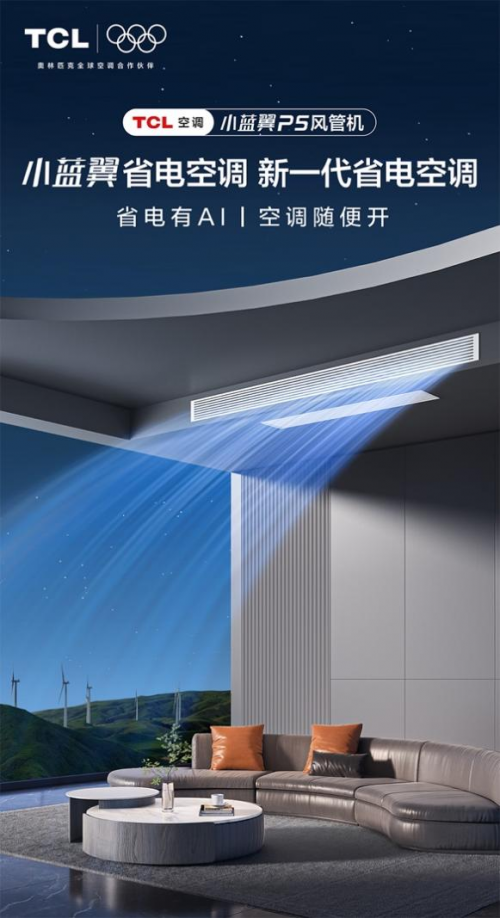近日,TCL空调推出的小蓝翼P5风管机上市,作为新一代省电空调,以AI省电、静音舒适、极速调温等创新技术,为客厅场景量身打造了专属的空气解决方案。