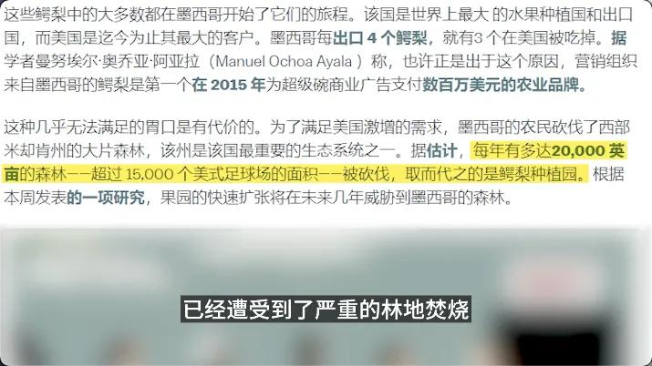在中国,牛油果的进口量从2010年的2吨暴增至2022年的4.3万吨。新式餐厅争相推出牛油果沙拉、奶昔,健身博主宣称它“比肉更健康”,却很少有人提及:每颗牛油果需要消耗272升水,墨西哥种植区因过度开采地下水导致地震灾害频发。